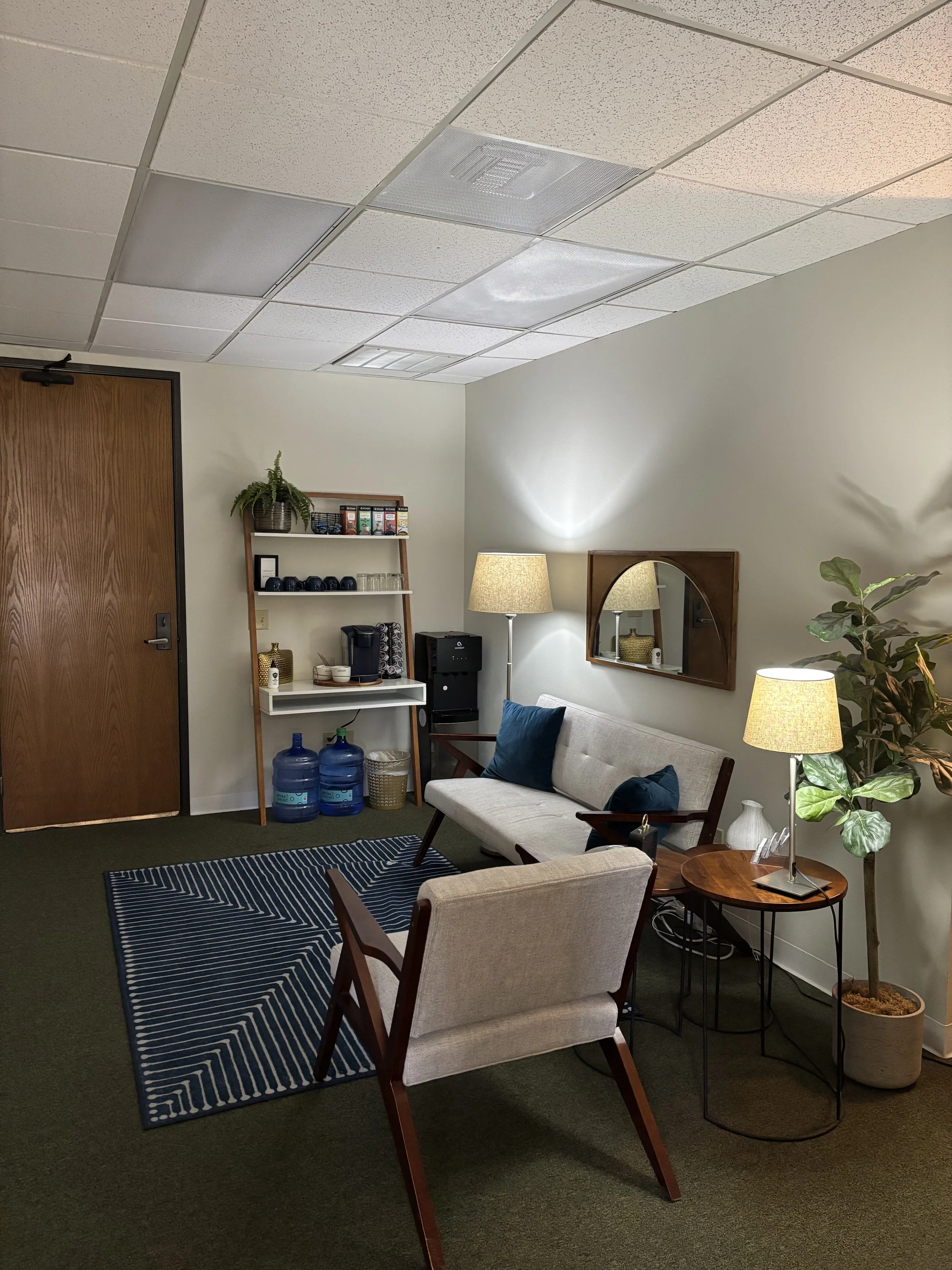 Help yourself to some water, coffee, tea, or snacks while you wait for your session to start!